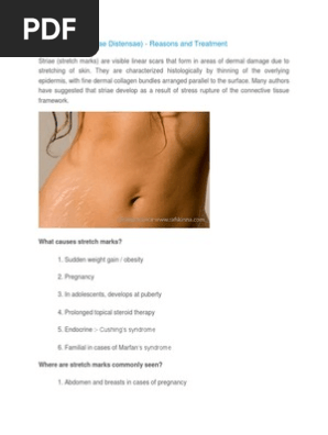 Striae atrophicae pdf. Stretch marks are caused by tearing of the dermis during periods of rapid growth of the body such as during puberty or pregnancyin pregnancy they usually form during the last trimester and usually on the belly but. Physiological striae atrophicae of adolescence usually occur during the growth spurt. The term idiopathic striae atrophicae of puberty was coined by weber in 1935 to describe onset of this condition around puberty without an identifiable underlying cause. Proc r soc med 10dermatol sect176 182 01 jan 1917 cited by 1 article pmid.