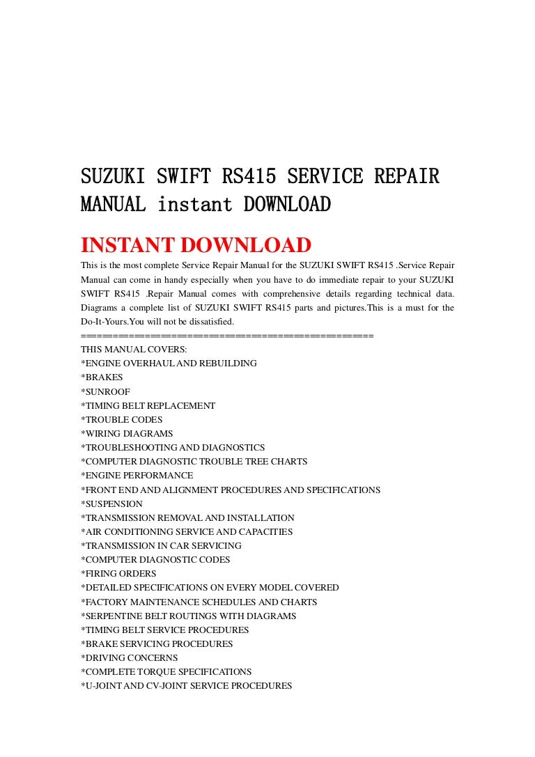 Suzuki Swift Rs415 Service Repair Manual Instant Download