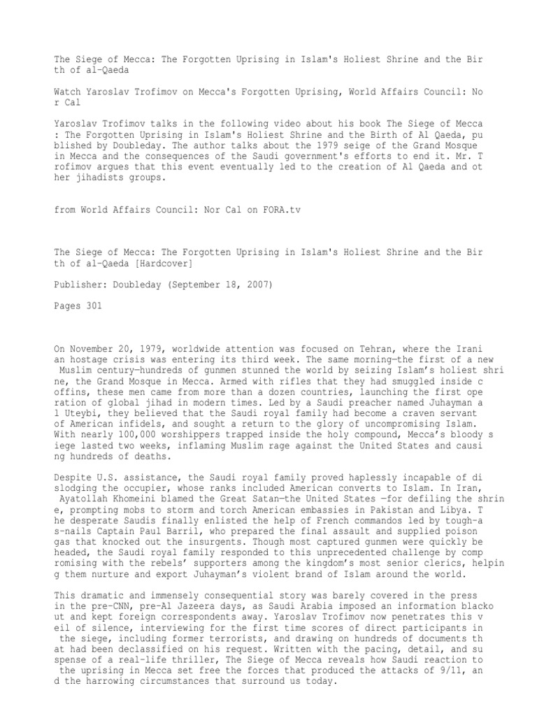 Yaroslav Trofimov The Siege Of Mecca The 1979 Uprising At